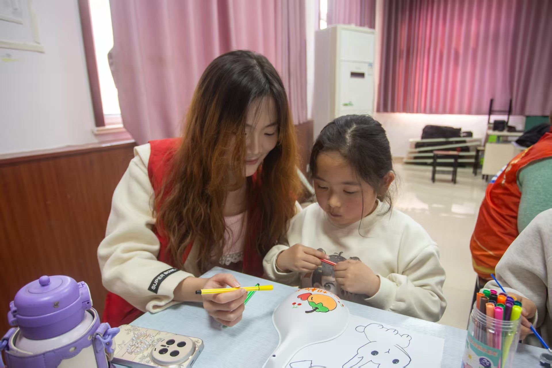 活动过程中,志愿者们紧扣非遗体验、科技科普、安全宣教三大核心主题,为孩子们量身打造特色实践课堂。志愿者率先通过图片、短视频等载体,细致科普马勺脸谱非遗文化,深入讲解其历史起源、艺术特色与深厚文化内涵;紧接着借助AI绘画工具,引导孩子们发散思维构思创意脸谱,依托AI技术生成个性化设计方案,同步普及AI基础知识与网络安全常识,让孩子们真切感受“科技+非遗”的融合魅力。孩子们参照AI设计底稿,亲手绘制专属马勺脸谱,沉浸式体验创作乐趣。活动现场全程抓拍孩子们创作、互动的暖心瞬间,定格美好回忆。活动结束后,志愿者团队开展集中总结,各小组依次汇报活动成果、分享实践心得。