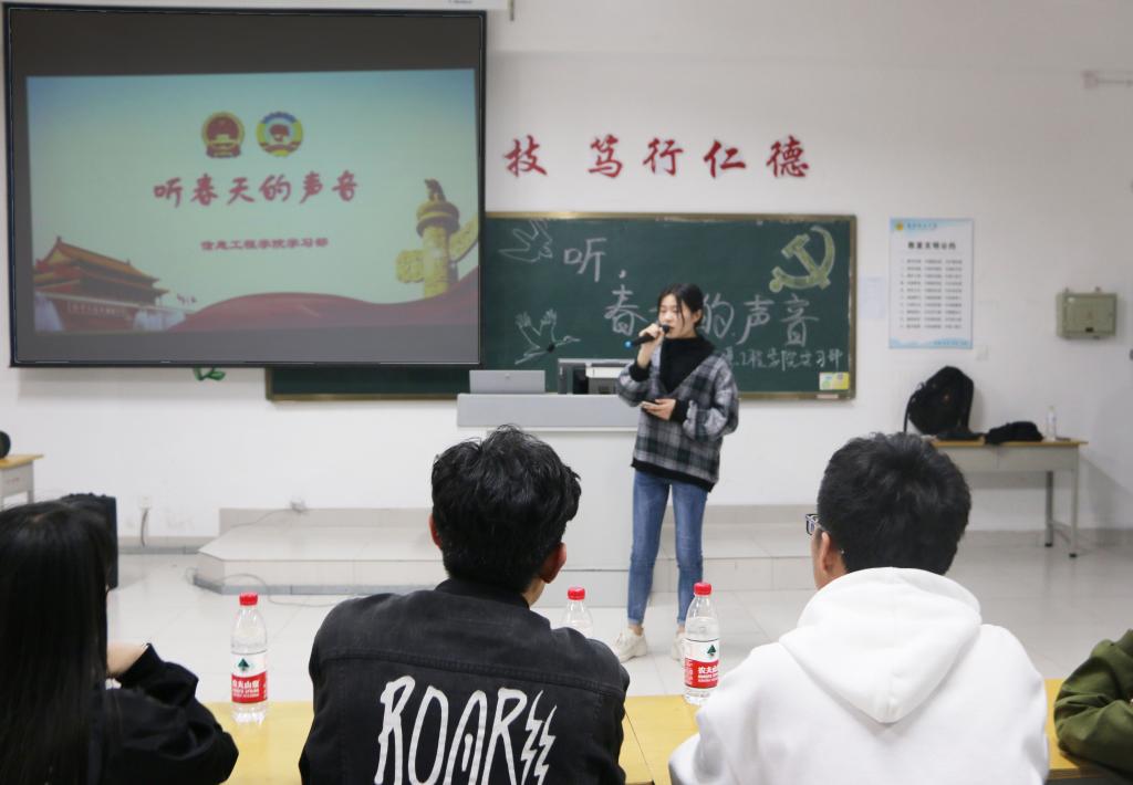 活动伊始,主持人通过PPT对2018全国两会进行简单介绍,让同学们了解两会热点并播放了李克强总理答记者问的视频。视频播放结束后,同学们开展“两会,我想对你说”活动,同学们对两会中热议的话题各抒己见,共同探讨。