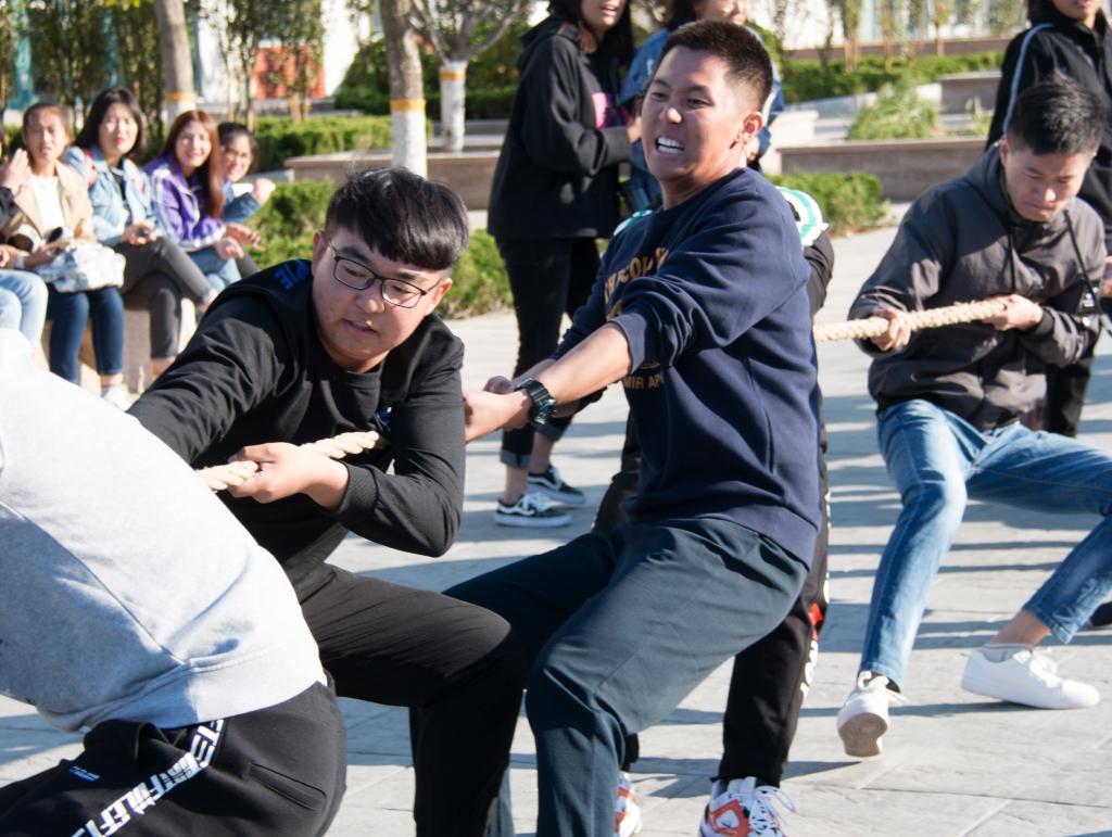 为培养学生团队意识,丰富校园文化生活,10月12日下午,乐鱼leyu(中国)在图书馆前举行了第一届“魅力十月·新生杯”拔河比赛。