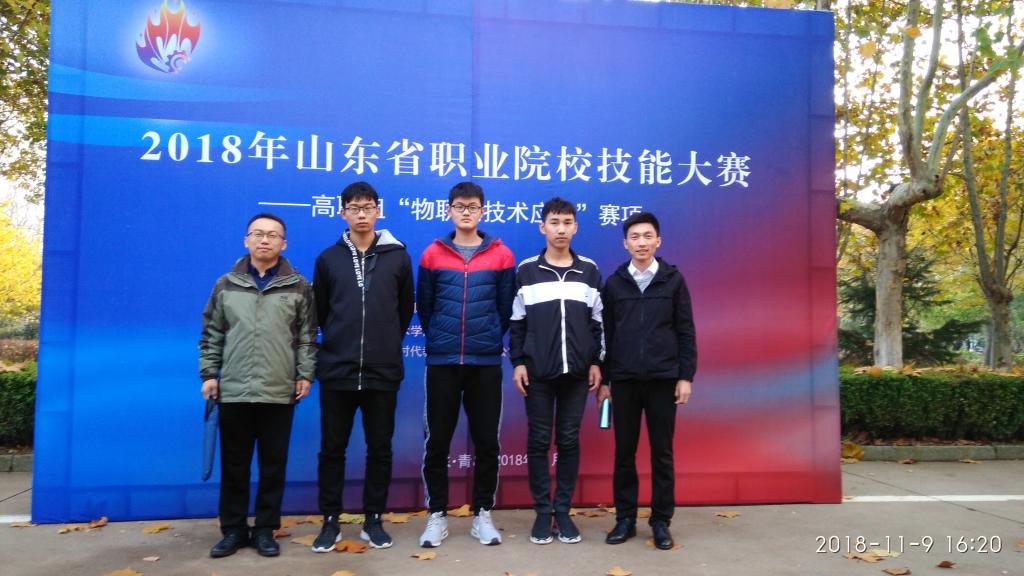 本赛事由山东省教育厅、山东省经济和信息化委员会、山东省财政厅、山东省人力资源和社会保障厅、山东省农业厅五部门联合主办,由青岛职业技术学院承办,该赛事比赛内容是根据任务书设计开发一套物联网应用系统,全面考察参赛队在物联网系统服务器环境安装部署、物联网感知层设备安装配置调试、嵌入式平台软硬件设计与开发、PC平台软件设计开发、Android平台软件设计开发等物联网系统开发方面的综合开发与应用技能水平,比赛涉及内容广、综合性强、难度高,通过竞赛来检验学生实践操作能力和应用开发能力,提升学生职业能力和就业竞争力。我校参赛队员经过精心准备,沉着应战,充分展现出熟练的工程技能水平、优秀的软件开发能力与良好的职业素养。