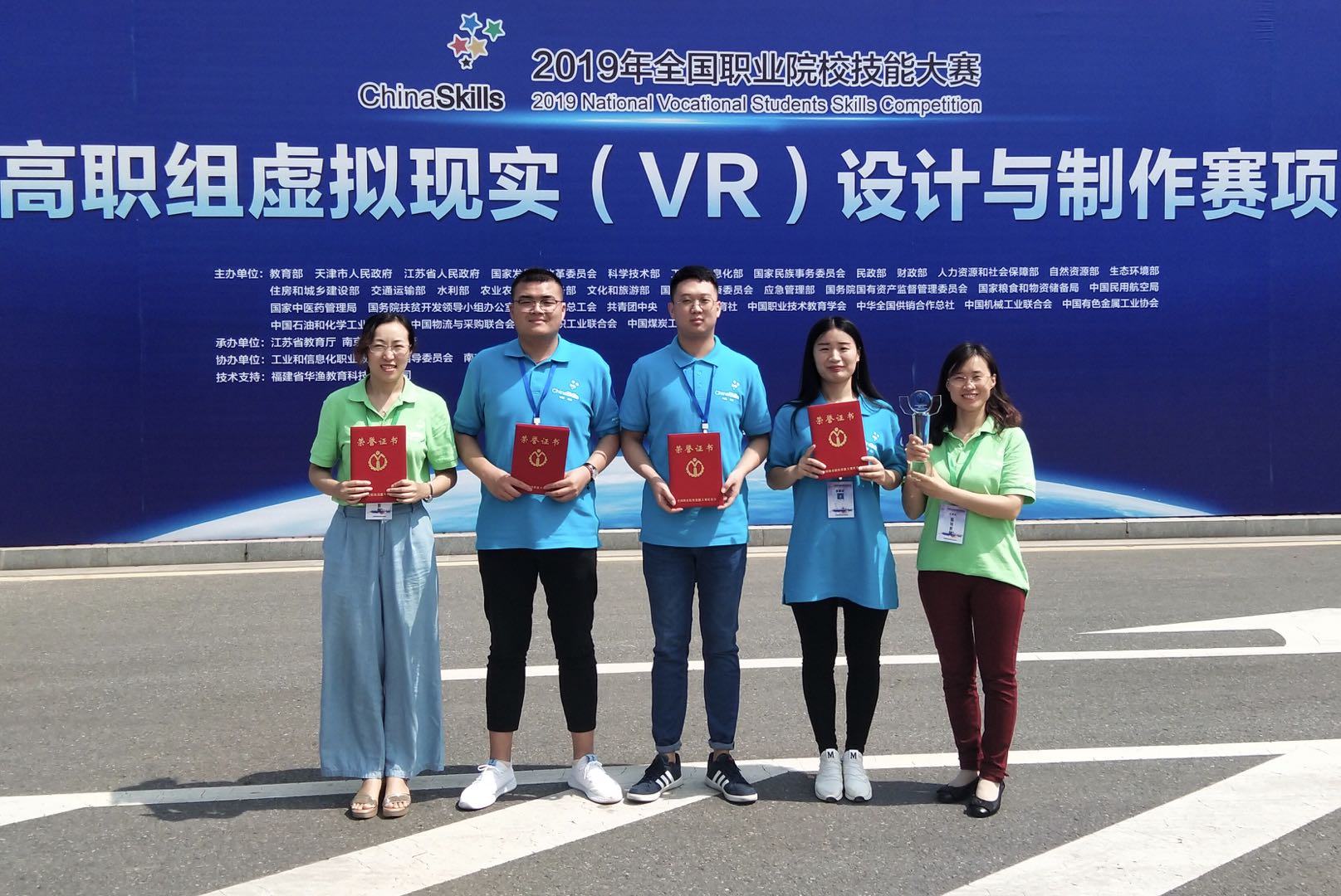 5月31日,2019年全国职业院校技能大赛高职组“虚拟现实(VR)设计与制作”赛项在南京信息职业技术学院举办,来自全国80个代表队参加角逐。乐鱼网页版学生赵术涵、李浩、崔宁组成的代表队,在指导教师团队刘德强、朱丽兰、刘萍的指导下获得团体一等奖,指导教师刘德强、朱丽兰获“优秀指导教师奖”。