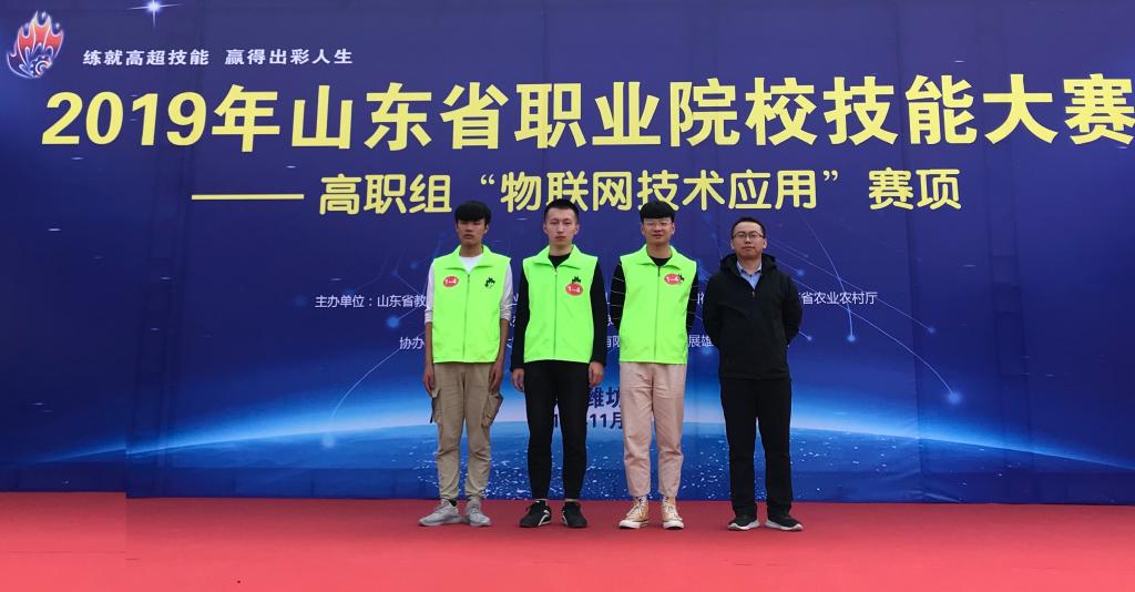 11月1日,2019年山东省职业院校技能大赛(高职组)“物联网技术应用”赛项在山东信息职业技术学院举办,来自全省高职院校的25支代表队参加了本次比赛,经过激烈的角逐,由我校乐鱼leyu(中国)张志傲、高成名、吕洪震3名学生组成的潍坊职业学院参赛队,最终以总分第2名的优异成绩荣获一等奖,指导教师徐希炜、昌厚峰获得“优秀指导教师”,这是我校物联网应用技术专业连续第五次获得“物联网技术应用”赛项省赛一等奖。