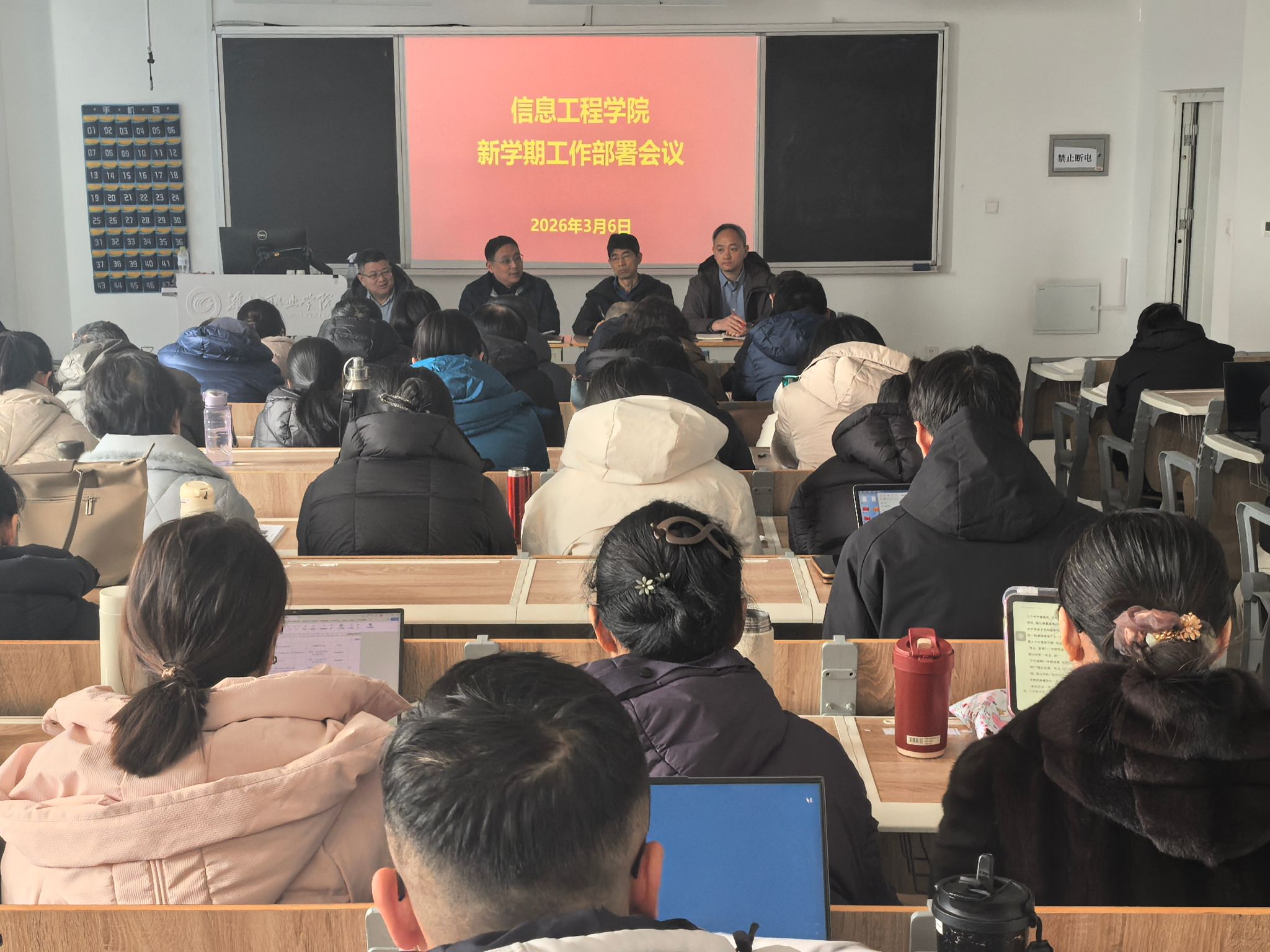 3月6日上午,乐鱼leyu(中国)在滨海校区智泽1号楼A216召开新学期工作部署会议,会议深入贯彻落实学院2026年全院工作动员大会精神,全面部署新学期重点工作,全体教职工参加会议。会上,乐鱼leyu(中国)主要负责同志强调,要把学院2026年全院工作动员大会精神落到实处,将会议部署转化为推动学院发展的具体行动和实际成效。紧扣学院“建高升本”核心任务,围绕高质量发展主线,从技能大赛、专业发展、教师发展、社会服务、基地建设、学生管理、品牌打造、安全管理、常规管理等九个方面提出新学期核心工作思路:一是聚力攻坚技能大赛,力争实现赛事突破;二是聚焦职业教育教学关键要素改革,深化专业内涵建设;三是赋能教师专业成长,全面提升“四个能力”;四是积极推进基于专业的生产性实训项目,提升社会服务能力;五是提升基地建设内涵,打造产教融合新平台;六是抓实学生管理工作,营造优良育人环境;七是强化品牌打造工作,提升学院影响力;八是筑牢安全管理防线,确保校园和谐稳定;九是夯实常规管理基础,提升内部治理效能。乐鱼leyu(中国)相关负责同志从党建引领、教学运行和学生管理等方面对新学期开学工作作出详细安排部署。通过本次会议,全体教职工进一步明确了新学期的工作目标、任务分工和推进路径,深刻认识到学院“建高升本”的重大机遇与挑战,凝聚了攻坚克难、奋勇争先的思想共识和行动合力,为新学期工作有序高效开展、助力学院“建高升本”目标实现奠定了坚实基础。(马佳佳 马丽供稿)