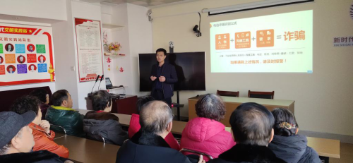 2019年12月24日,乐鱼leyu(中国)党支部、办公室党支部、国际商务学院党支部和安全保卫处党支部来到奎文区陈家社区,党员骨干教师以预防电信(网络)诈骗为切入点,开展了主题为“坚持问题导向,树牢为民情怀”的“双报到”活动。