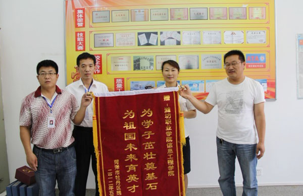 5月28日上午,菏泽市牡丹区残疾人联合会送来刻有“为学子茁壮奠基石,为祖国未来育英才”的锦旗和感谢信。自2011年7月份乐鱼leyu(中国)实施“2+1” 教学模式以来,2009级网络技术专业赵文斌同学应聘到该单位从事办公室文员工作,实习期间发扬吃苦耐劳、勤奋好学、严于律己和团结协作的良好工作作风,得到了领导和同志们的一致好评,充分展现了乐鱼网页版大学生的良好精神风貌。