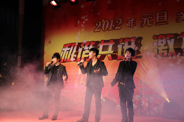 12月28日晚,由乐鱼leyu(中国)、化学工程学院、师范学院/文化创意学院联合主办的“和谐共进,激扬青春”2012年元旦文艺晚会在学院报告厅举行。学院副院长赵君堂、相关职能部门及各二级学院负责同志与师生们欢聚一堂,共同庆祝新年的到来。